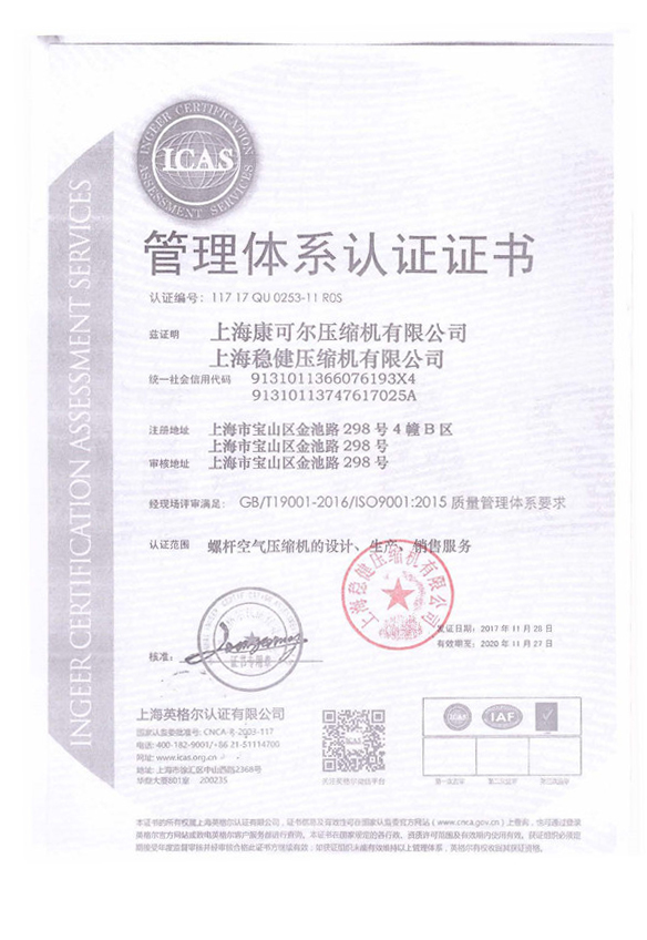 管理體系認證證書